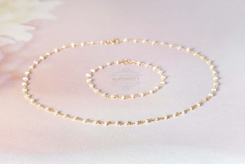 Unsere Damen Schmucksets sind aufmerksam zusammengestellt und mit verspielten Details versehen. Auch schlichtere Schmuck Kombinationen, wie zum Beispiel Halsketten und Ohrringe mit Süßwasserperlen verziert, kannst du hier bei myPEONITY problemlos finden.