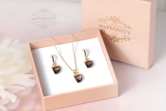 In unseren Sets die Auswahl der Edelsteine und Materialien feinstimmig und bedacht zusammengestellt. Entscheide dich zum Beispiel für ein Set mit zart verarbeiteten Ohrringen und einer dazu
